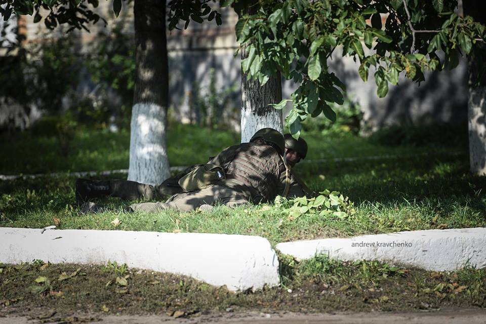 "Уезжайте отсюда, тут снаряды взрываются, - обратился к нам тучный вояка. - Так мы пресса, потому и приехали, что они взрываются. - Пресса не бессмертная. Мне самому сс...тно. Выезжайте на трассу. Вглубь мы никого не пропустим".