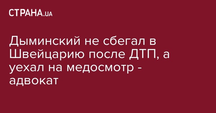 Адвокат львовского бизнесмена Петра Дыминского, который проходит по делу о смертельном ДТП, подтвердил, что владелец ФК "Карпаты" и телеканала ZIK после аварии уехал в Швейцарию, где находится по сегодняшний день. Об этом Николай Лысый сообщил в Facebook.