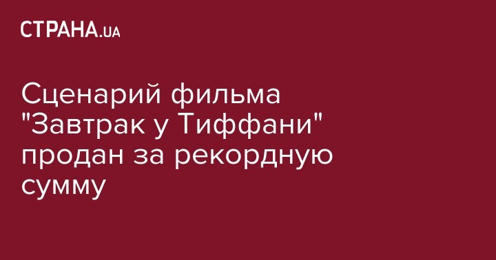 Сценарий фильма "Завтрак у Тиффани" с пометками актрисы Одри Хепберн,сыгравшей главную роль, продан на торгах Christie’s за рекордную для сумму в 632,7 тыс. британских фунтов. Об этом пишет "Коммерсант".