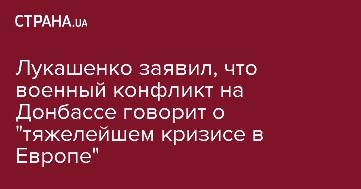 Лукашенко заявил, что военный конфликт на Донбассе говорит о "тяжелейшем кризисе в Европе"