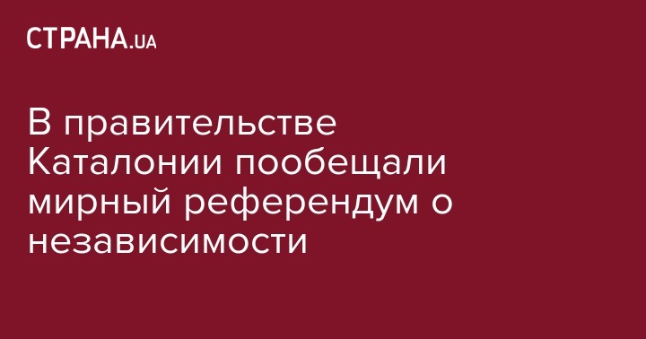 В Правительство испанской Каталонии пообещали принять все необходимые меры для того, чтобы референдум о независимости, запланированный на 1 октября 2017, прошел мирно.