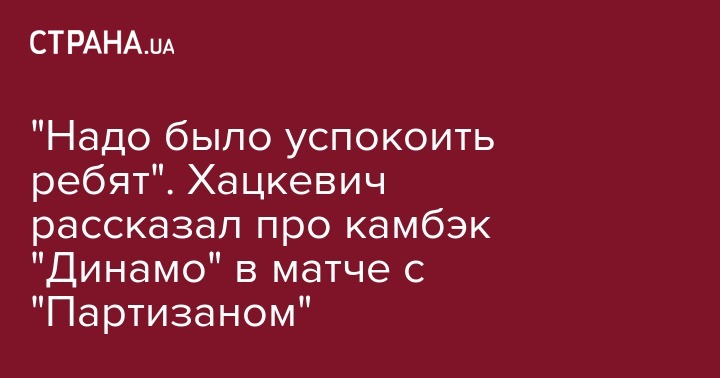 Главный тренер "Динамо" Александр Хацкевич прокомментировал нервозную победу своей команды над сербским "Партизаном" в Лиге Европы (2:3) и рассказал, что говорил в перерыве в раздевалке при счете 2:0. Его интервью публикует пресс-служба "Динамо".