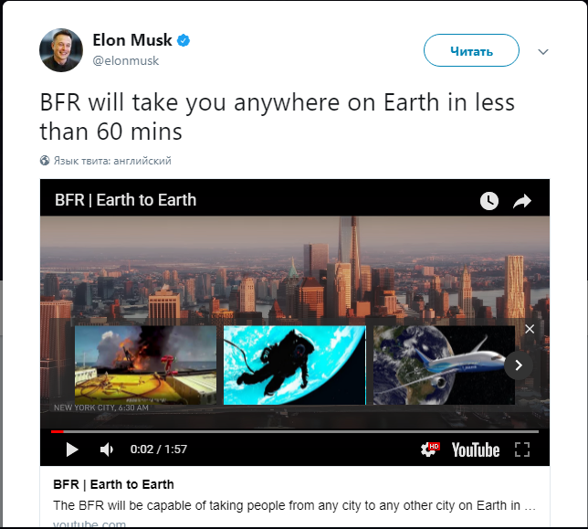 Илон Маск показал как путешествовать по Земле на ракете. Видео