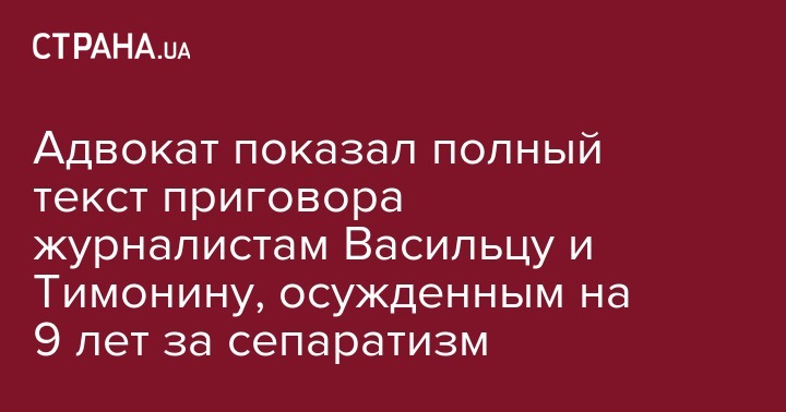 Напомним, что журналиста Дмитрия Васильца и Евгения Тимонина Андрушовский суд Житомирской области признал виновными. Обоим дали по 9 лет лишения свободы. В этот срок учитывается время, проведенное ими в СИЗО, где Василец и Тимонин находятся с 2015 года.