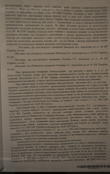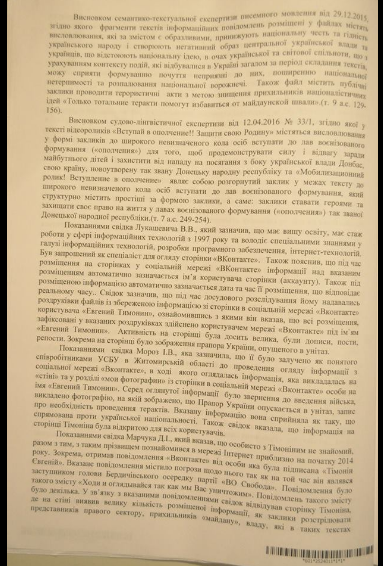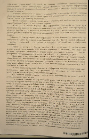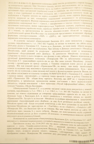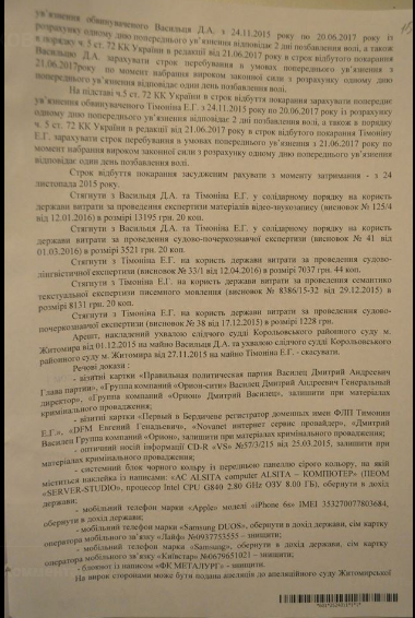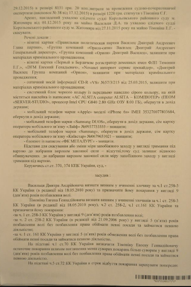 Адвокат Светлана Максимец обнародовала приговор Андрушовского суда по делу журналиста Дмитрия Васильца и оператора Евгения Тимонина. Фото документа она разместила в Facebook.