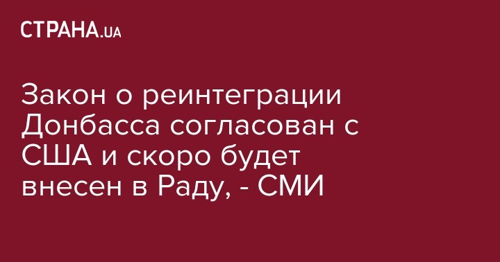 Администрации президента Порошенко согласовала с американскими партнерами законопроект о реинтеграции Донбасса и в ближайшее время документ будет зарегистрирован в парламенте.