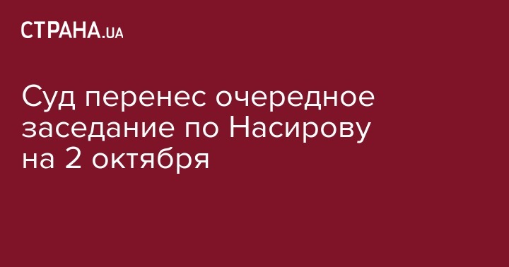 Соломенский райсуд Киева перенес на 2 октября очередное заседание по временно отстраненному главе Государственной фискальной службы Роману Насирову. Об этом сообщает пресс-служба САП, передает УНН.