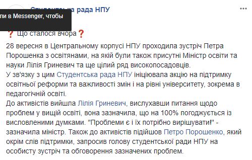 Студенты Драгоманова пожаловались Гриневич и Порошенко, что их заставляют молиться вместо пар