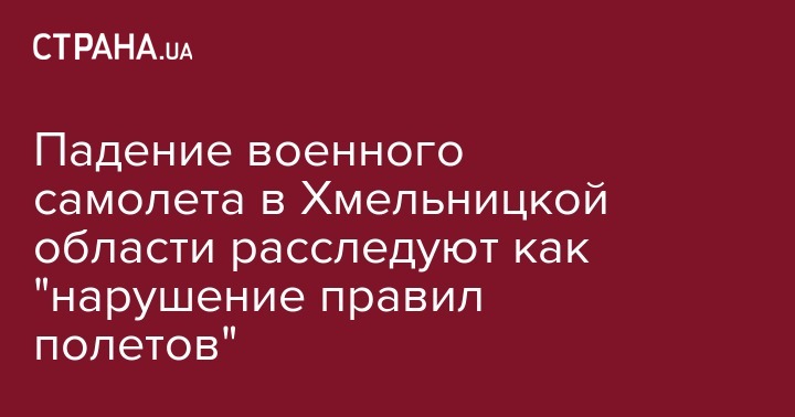 Падение военного самолета в Хмельницкой области квалифицировано как "нарушение правил полетов, которое привело к тяжелым последствиям". Об этом на Facebook в пятницу, 29 сентября сообщил военный прокурор сил АТО Олег Сенюк.