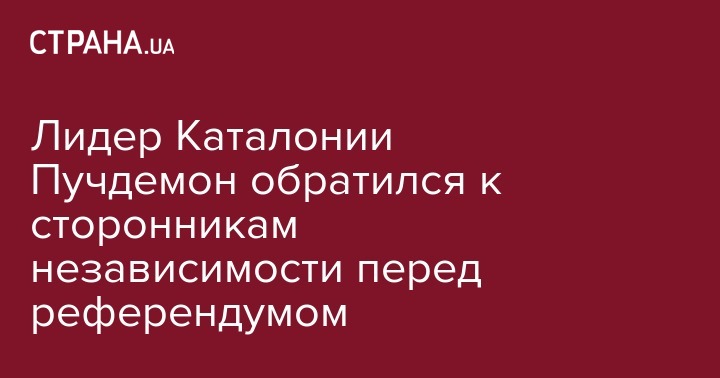 Лидер Каталонии Пучдемон обратился к сторонникам независимости перед референдумом