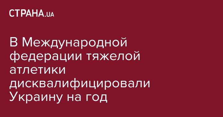 В Международной федерации тяжелой атлетики (IWF) приняли решение отстранить Федерацию тяжелой атлетики Украины и аналогичные федерации еще восьми стран от чемпионата мира-2017, т.к. они все дисквалифицированы на 1 год. Об этом сообщается на официальном сайте IWF.