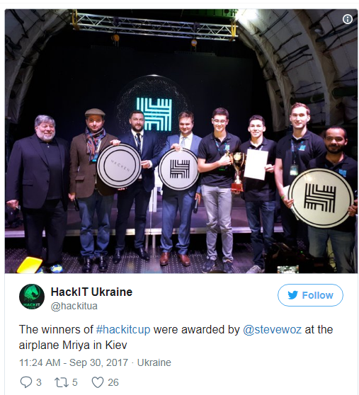 Премии лучшим участникам цифрового марафона HackIT Cup вручали соучредитель компании Apple Computer Стив Возняк и создатель пакета программного обеспечения для шифрования электронной почты PGP Филипп Циммерман.