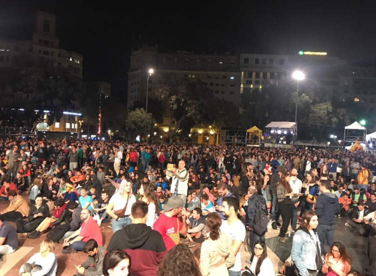 Как сообщает корреспондент "Страны", люди ожидают результата голосования на площади в Барселоне.