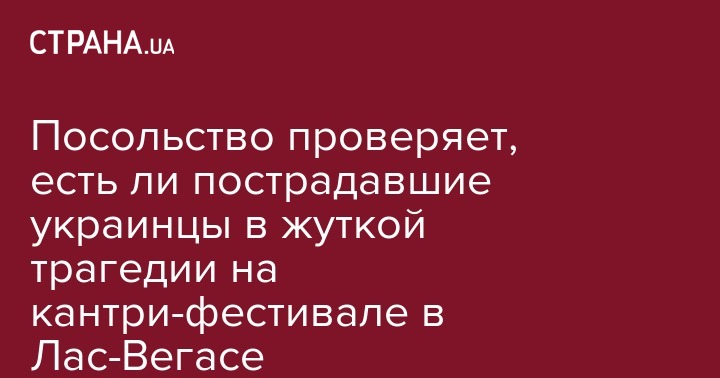 Посольство Украины в США проверяет информацию о наличии граждан Украины среди пострадавших в результате стрельбы на музыкальном фестивале в Лас-Вегасе. Об этом сообщает "Интерфакс-Украина".