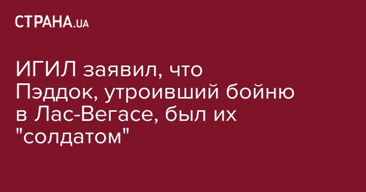 Террористы "Исламского государства" сообщили, что открывший стрельбу по толпе в Лас-Вегасе Стивен Пэддок был их "солдатом" и принял ислам "много месяцев назад". Об этом сообщает Мониторинговая группа SITE Intelligence со ссылкой на джихадистское агентство Amaq.