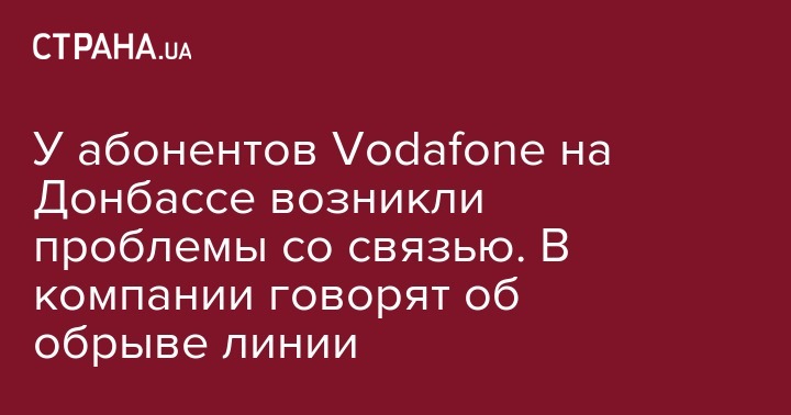 У абонентов Vodafone Донецкой и Луганской областей сегодня возникли серьезные проблемы со связью из-за обрыва линии. Об этом сообщает сайт ПрАО "ВФ Украина".