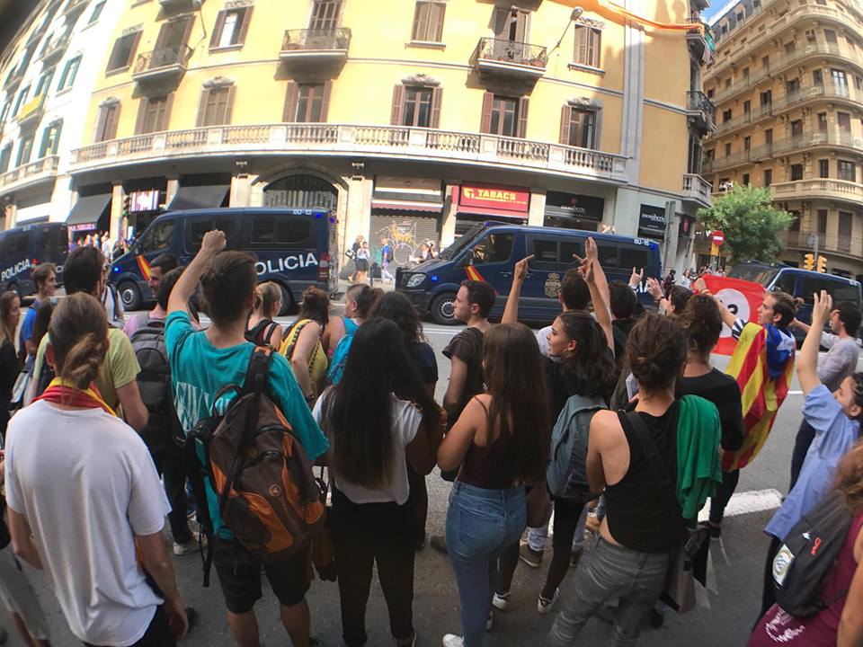 Через некоторое время Национальная полиция начала покидать Барселону. Студенты-активисты устроили им "горячее прощание", махая руками и выкрикивая лозунги.
