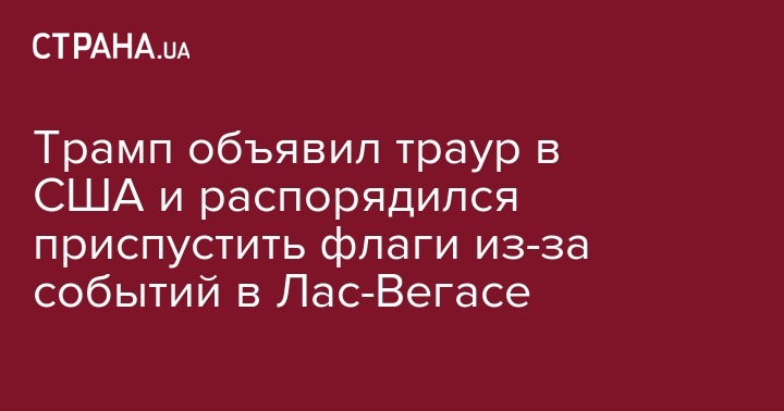 Президент США Дональд Трамп объявил о том, что государственный флаг США будет приспущен в знак памяти жертв стрельбы в Лас-Вегасе. Такое заявление опубликовано в пресс-релизе Белого дома.