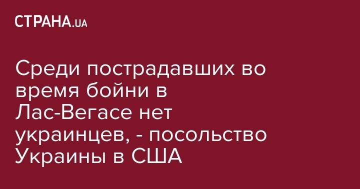 Посольство Украины в США заявляет, что по предварительной информации граждан Украины нет среди пострадавших в результате стрельбы на музыкальном фестивале в Лас-Вегасе (США).