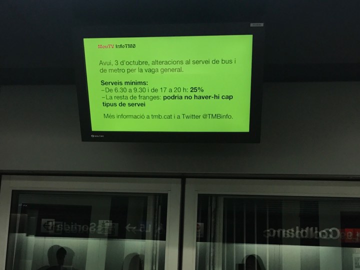 Как передает корреспондент "Страны", всеобщая забастовка началась в 9:30 по испанскому времени в Барселоне. Приостановлено движение общественного транспорта, в том числе метро.