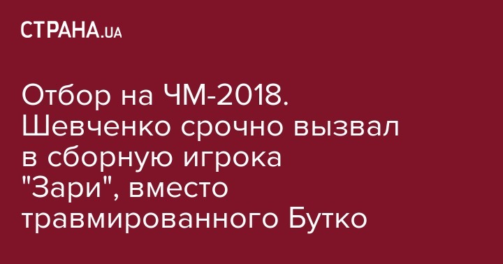 Отбор на ЧМ-2018. Шевченко срочно вызвал в сборную игрока "Зари", вместо травмированного Бутко