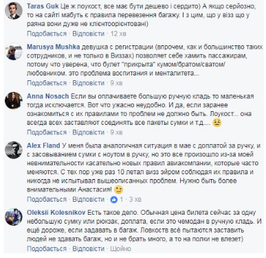 "С этим малюсеньким чемоданом я летаю всегда. Ок, простояла в очереди, заплатила за багаж - это половина стоимости одного билета. Но на этом история не закончилась. При посадке в самолет, меня девушка очень грубо попросила совместить сумку, в которой ноутбук, документы, папки и прочее с ручным багажом, за который я уже доплатила. WTF. Я сказала, что это унизительно и невозможно, и никто при регистрации мне этого не сказал. На что она сказала выйти из очереди и не лететь тогда. Это просто суперужасный, отвратительный, унизительный сервис. Ever!" - написала зам Аваакова.