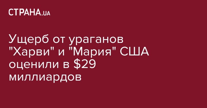 Белый дом оценил разрушительные последствия ураганов в США на сумму 29 млрд долл. Об этом сообщает Reuters.