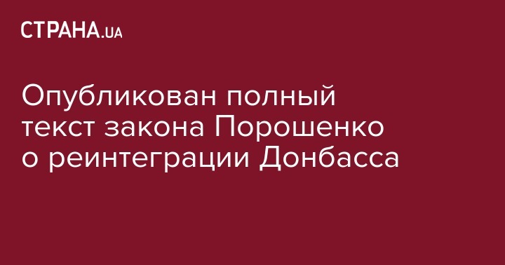 На официальном сайте Верховной Рады опубликован законопроект "Об особенностях государственной политики по обеспечению государственного суверенитета Украины над временно оккупированными территориями в Донецкой и Луганской областях".