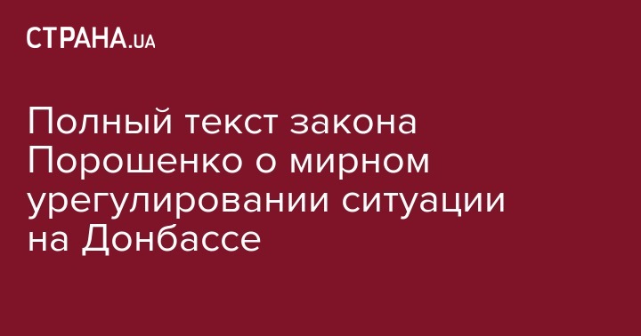 Ранее "Страна" также разбиралась, что представляет собой законопроект о реинтеграции Донбасса, а также сообщила о главных положениях двух законов президента о Донбассе.