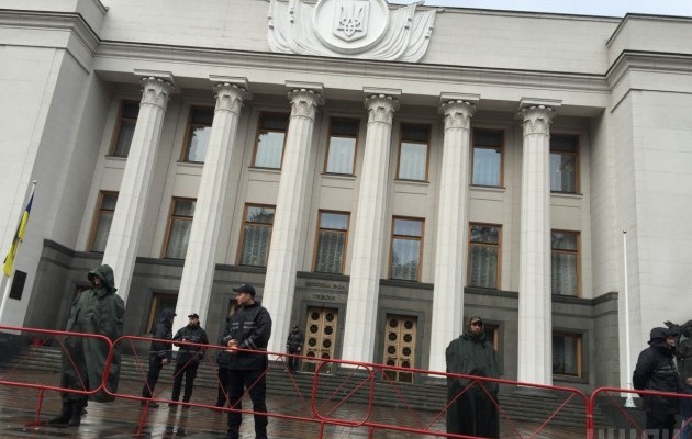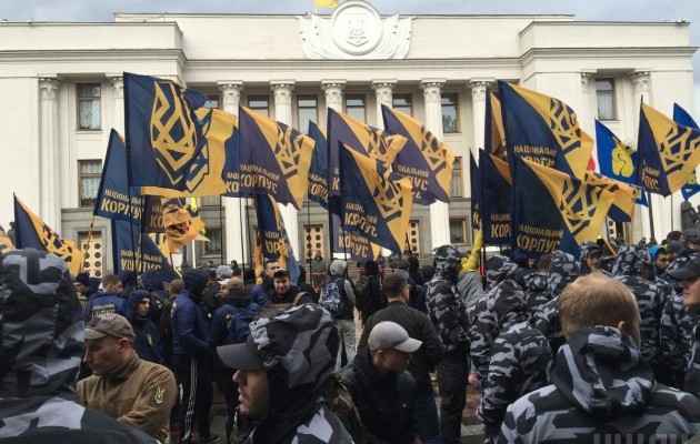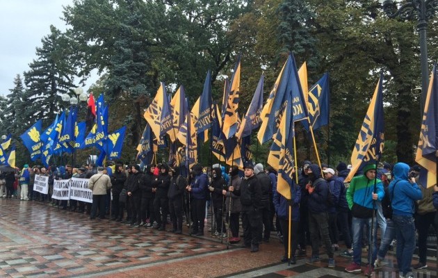 Под Верховной Радой около 100 человек с флагами "Национального корпуса" и "ВО Свобода" собрались на митинг. Об этом сообщает УНИАН.