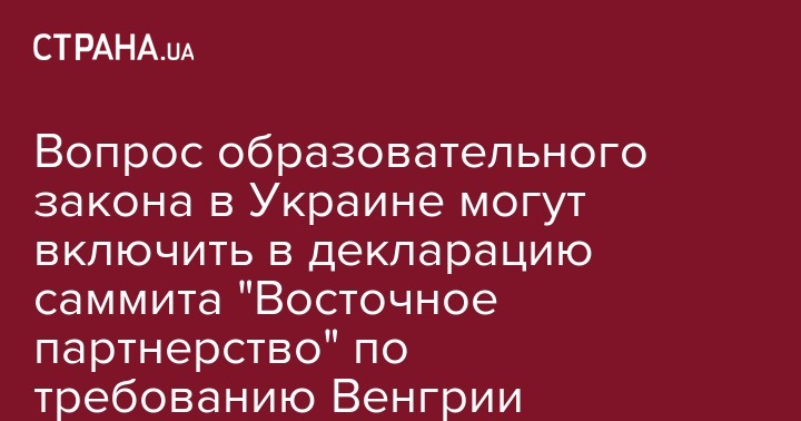 Венгрия может добиваться, чтобы вопрос образовательного закона Украины был включен в итоговую декларацию саммита "Восточного партнерства", поскольку закон нарушает права венгерского меньшинства. Об в Twitter сообщил журналист Рикард Йозвяк.