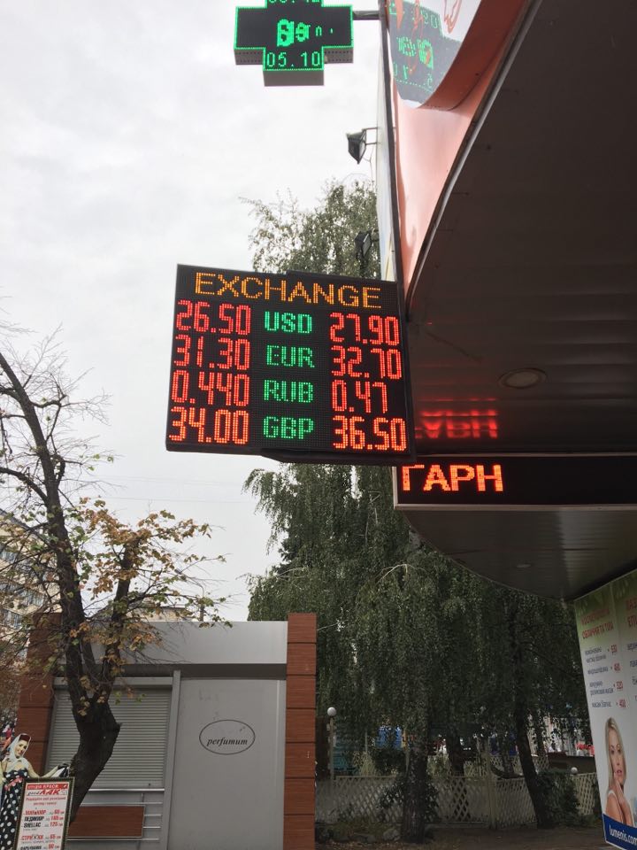 В киевских обменниках в четверг, 5 октября, резко вырос курс евро. Средний курс покупки вырос сразу на 0,46 коп. до 31,3455 UAH/EUR, а в некоторых обменниках "Страна" увидела даже невероятные 32,70 гривен за евро в продаже.
