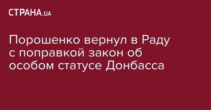 В четверг, 5 октября, президент Петр Порошенко вернул в Верховную Раде с поправкой законопроект 7164 о продлении действия особого статуса Донбасса. Об этом говорится на странице документа на сайте парламента.