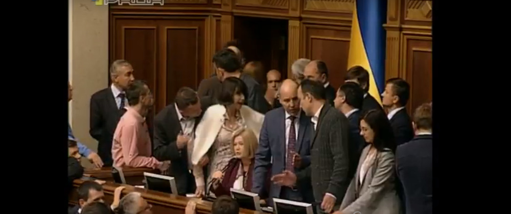 В Верховной Раде началось блокирование трибуны Верховной Рады. Трибуну заблокировали несколько депутатов от "Самопомочи " и партии "Свободы", в блокировании принимает участие Татьяна Черновол. Работа Верховной Рады парализована, объявлен перерыв.