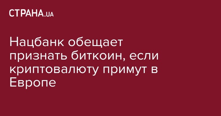 Нацбанк обещает признать биткоин, если криптовалюту примут в Европе