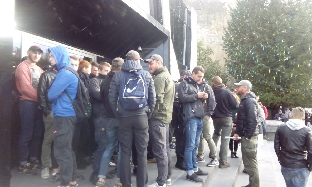 Еще до начала концерта под клубом собрались десятки радикаловв, среди которых представители ОУН, "Правого сектора", "Сокола", "Национального корпуса", участники Движения бойкота российских товаров, которые призывали людей отдать им приобретенные билеты на концерт.