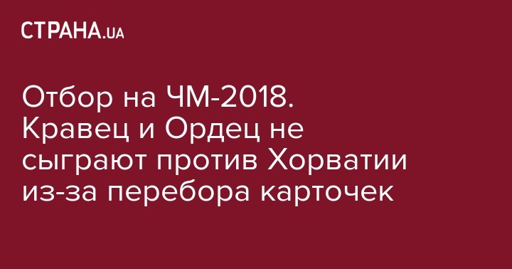 Для Кравца желтая карточка в игре с Косово стала второй в отборочном цикле, а вот Ордец заработал уже четвертое предупреждение.