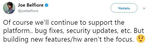 "Конечно, мы продолжим поддержку платформы… Будем исправлять баги и выпускать обновления систем безопасности и прочее. Но выпуск новых функций и устройств не планируется", - отметил Бельфиор.