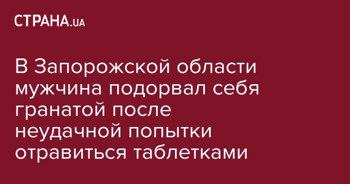В Запорожской области мужчина подорвал себя гранатой после неудачной попытки отравиться таблетками