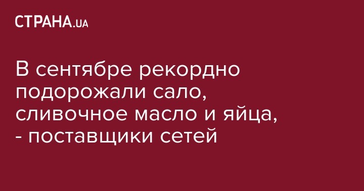"Сало добавило за сентябрь 8,7 грн на одном килограмме, сливочное масло - 5 грн, говядина - 3,2 грн, яйца и вареная колбаса - 2,5 грн, свинина, курица в тушке и мягкий сыр - 1,5 грн. На конец сентября килограмм сала в среднем по Украине стоил 60 грн, сливочное масло - 149,2 грн, говядина - 111,2 грн, яйца - 19,4 грн за десяток, колбаса вареная - 72,7 грн, свинина - 102,9 грн, курица в тушке - 55,4 грн, сыр жирностью 9% - 96,1 грн", - написал Дорошенко.