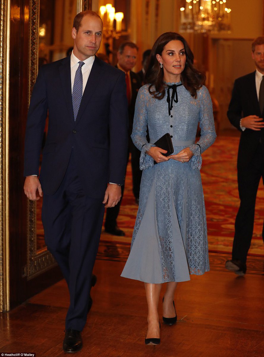 На мероприятие королевская семья пригласила гостей, которые трудятся в сфере психического здоровья в Великобритании. Перед собравшимися жена принца Уильяма появилась в нежно-голубом кружевном платье от Temperley London.