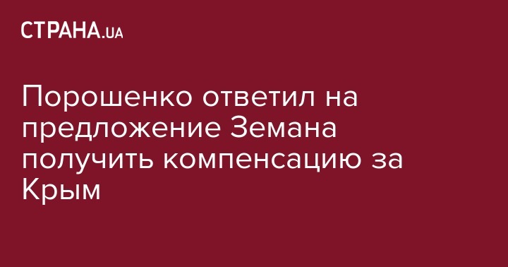 Президент Украины Петр Порошенко с трибуны в ПАСЕ ответил президенту Чехии Милошу Земану, предложившему Киеву получить компенсацию за Крым, передает РИА "Новости".