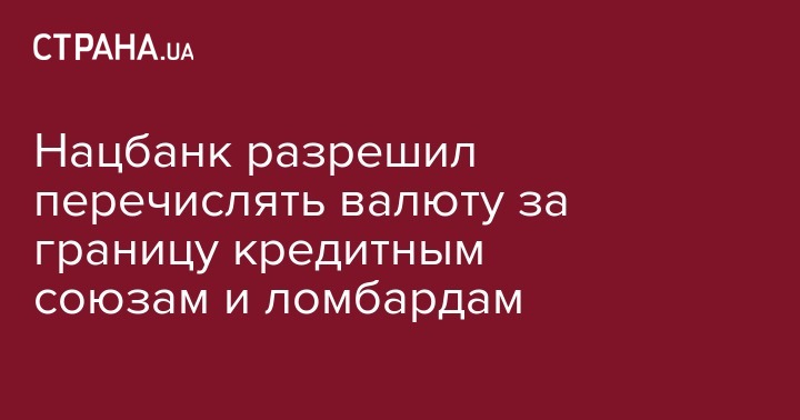 Нацбанк разрешил перечислять валюту за границу кредитным союзам и ломбардам