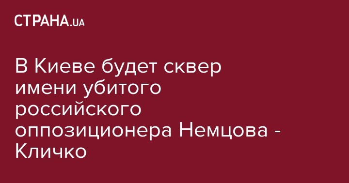 В Киеве в ближайшее время один из скверов города могут назвать в честь российского оппозиционного политика Бориса Немцова. Об этом заявил мэр столицы Виталий Кличко, передает пресс-служба КГГА.