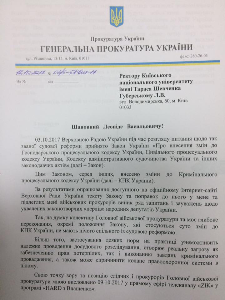 "Изменения в УПК подписывать нельзя! Я обратился ко всем руководителям правоохранительных органов и руководителей юридических ВУЗов и Академии правовых наук поддержать мою позицию. Не оставляю надежды, что председатель ВР Украины Парубий одумается и не будет придумывать "ноу-хау" в части "осуществление редакционного и технико-юридической доработки", а фактически переписывание отдельных норм Закона. Если так сделают - это составит состав преступления", - написал главный прокурор страны.