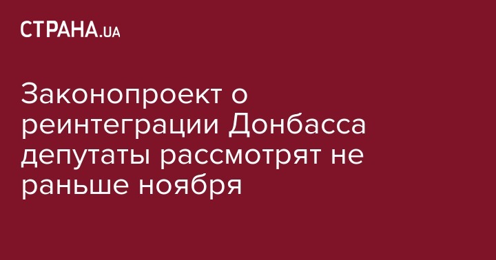 Законопроект о реинтеграции Донбасса будет рассматриваться в Верховной раде не ранее ноября текущего года.