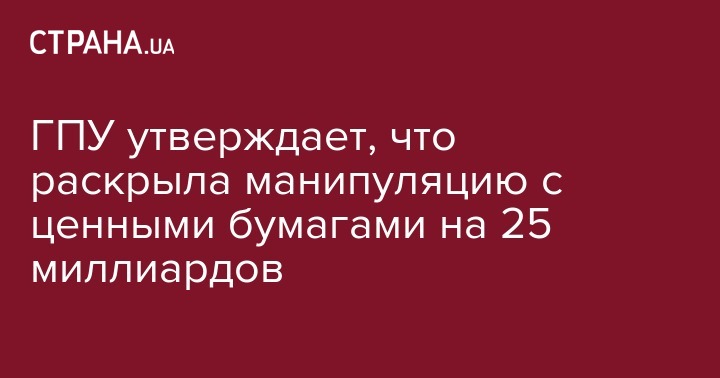 "В результате данной преступной деятельности на фондовом рынке Украины в настоящее время обращаются "мусорные" ценные бумаги 38 эмитентов на общую сумму, необоснованно завышенной капитализации, около 25 млрд грн", - сообщили в ведомстве.
