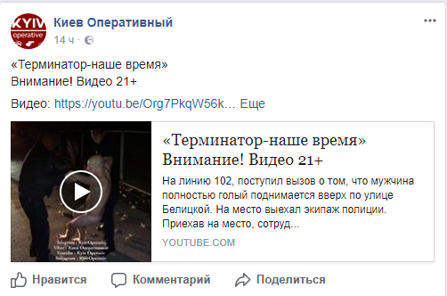 В Киеве полицейские поймали голого мужчину, который в час ночи шел в церковь. Видео задержания мужчины на своей странице в Facebook опубликовал "Киев оперативный".