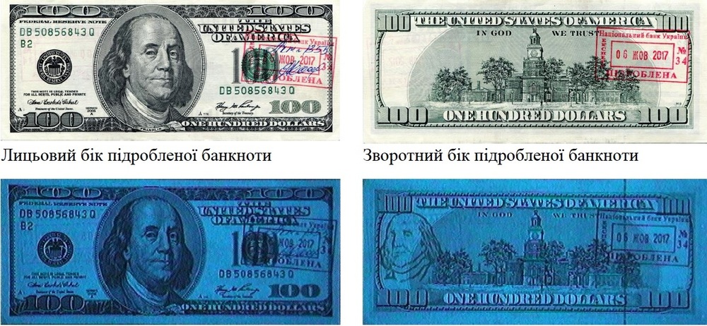 Несколько из них недавно выявил наш Нацбанк. Департамент денежного обращения НБУ сообщил об изъятии из денежного оборота нового варианта полиграфических подделок соток серии 2006А с имитацией инфракрасной и магнитной защиты.