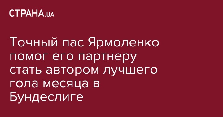 Точный пас Ярмоленко помог его партнеру стать автором лучшего гола месяца в Бундеслиге